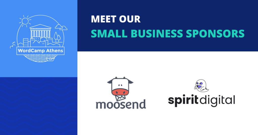 Ευχαριστούμε την Moosend και την Spirit digital που στηρίζουν το WordCamp Athens 2025 ως Small Business sponsors.